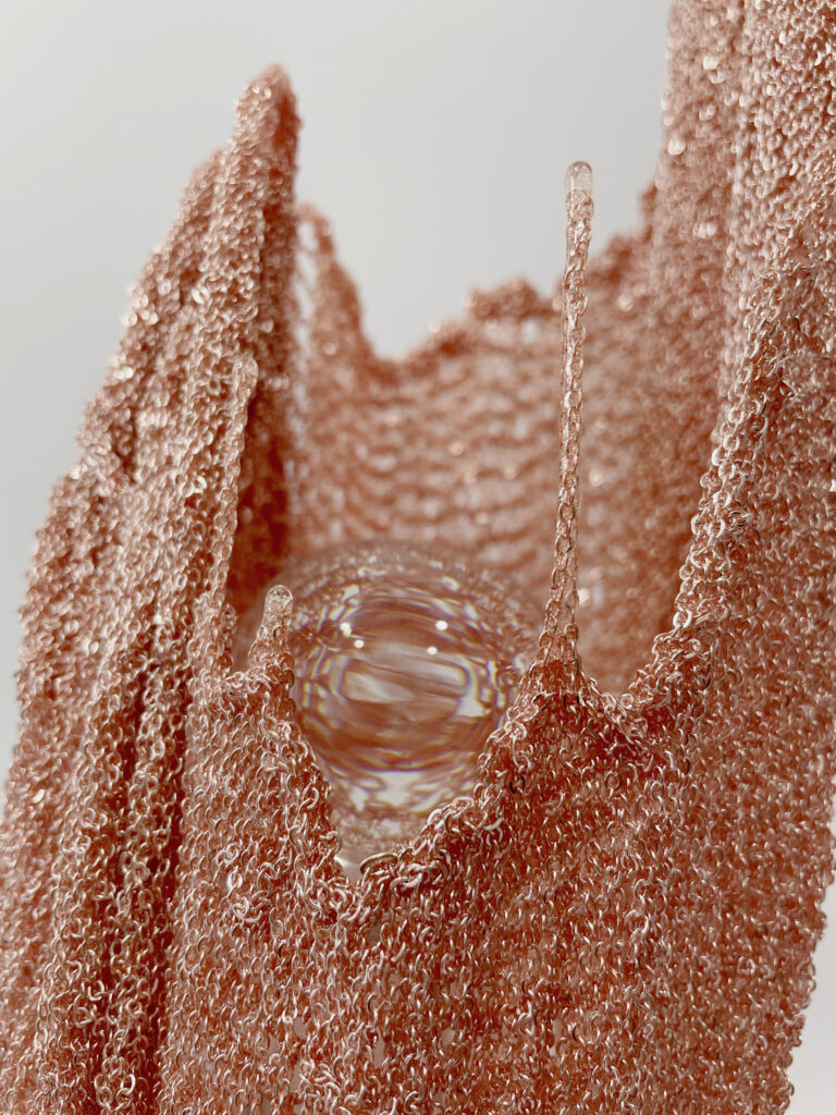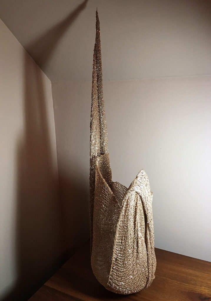 Natalia Fedner is a Ukrainian born American multi-disciplinary artist, inventor, and designer. Fedner studied fashion design, specializing in textile design and haute couture techniques at Parsons School of Design in NYC and Paris. She invented a 6-way stretch metal textile in 2016 and received the patent for it in 2021. Originally used for her innovative wearable art fashions, Fedner started creating resin metal sculptures using the malleable textile in 2019. While Natalia Fedner’s name is mainly associated with her name-sake fashion brand and celebrity clients (such as Beyonce, Lenny Kravitz, and Shakira), she has spent the past several years developing and exhibiting her gravity defying sculptures throughout the USA. Fedner’s works have been featured in Vogue, Harper’s Bazaar, Elle, Numero, Cosmopolitan and many other publications. Collectors of her works include Beyoncé, Lenny Kravitz and Retna. Her wearable art metal head piece for Beyoncé’s “Black is King” was included in Taschen’s “Ice Cold: A Hip Hop Jewelry History” art book.
