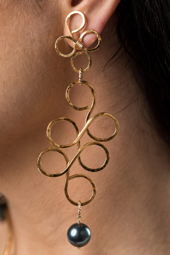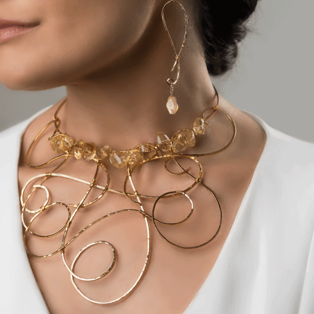 Now working with a team of skilled craftspeople, Priscilla has expanded into fine jewelry, designing with high karat gold and precious stones while continuing to offer demi-fine collections in gold fill, sterling silver, and richly plated finishes. Her work remains rooted in texture, movement, and fluid silhouettes—brought to life through luminous metal and vibrant gemstones.